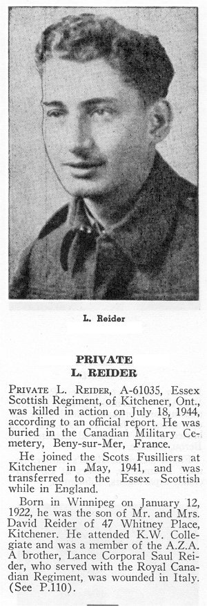 Les Canadiens qui sont morts vers la fin des combats en Normandie sont inhumés au cimetière militaire canadien de Bretteville-sur-Laize. Le cimetière militaire canadien de Bény-sur-Mer compte 2048 sépultures, ainsi qu'un monument spécial érigé à la mémoire d'un soldat du Corps canadien d'infanterie dont on sait qu'il a été inhumé ici, mais dont la tombe n'a jamais pu être trouvée.