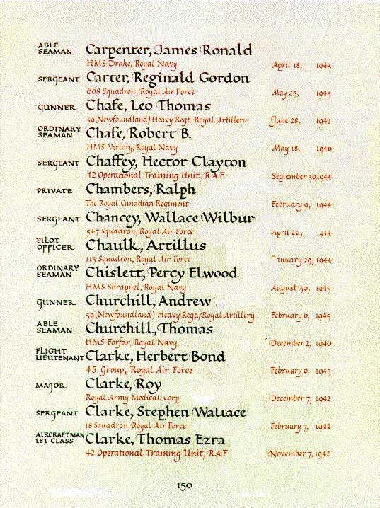 Page 150 du Livre du Souvenir de la Terre-Neuve.