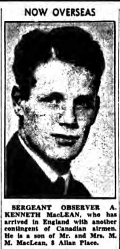 Fils de Murdoch Mackay Maclean et Edna Cecelia Maclean, de Ottawa, Ontario. Frère du lieutenant d'aviation George Murray MacLean, décédé le 20 janvier 1945 pendant qu’il servait dans le Royal Canadian Air Force.