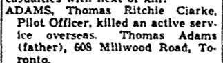 Fils de Thomas et Mary Ritchie Adams, de Toronto, Ontario, Canada Sec