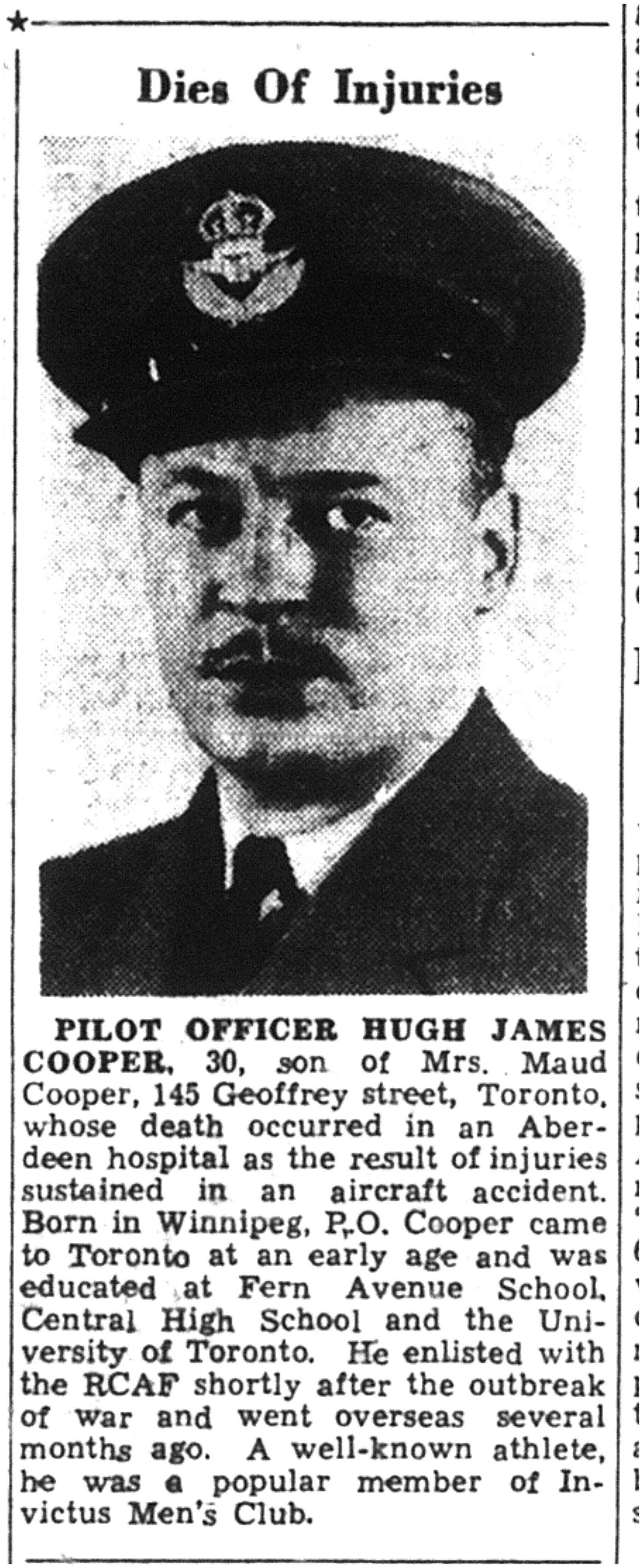 Frère du sergent John Donald Cooper, a servi dans l'Aviation royale du Canada et il est décédé le 21 octobre 1942.