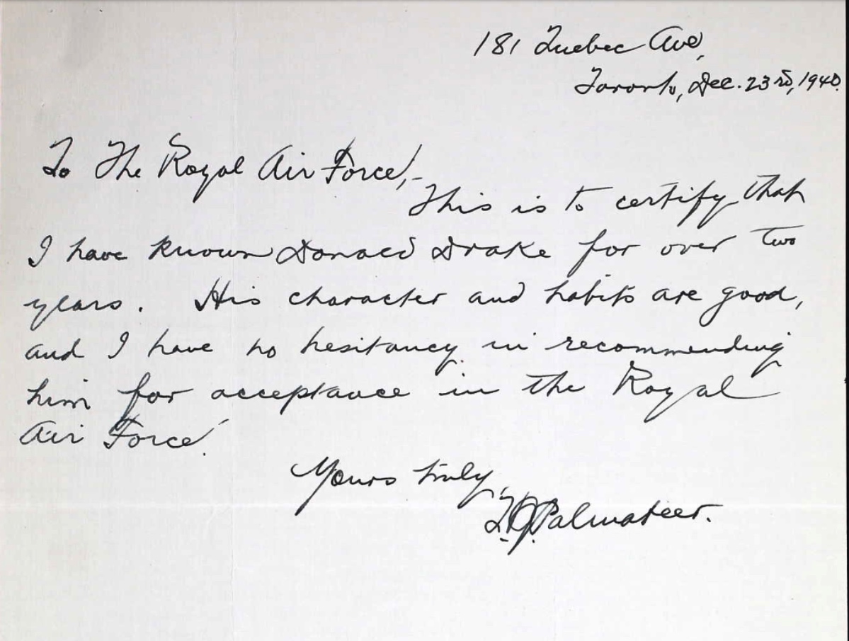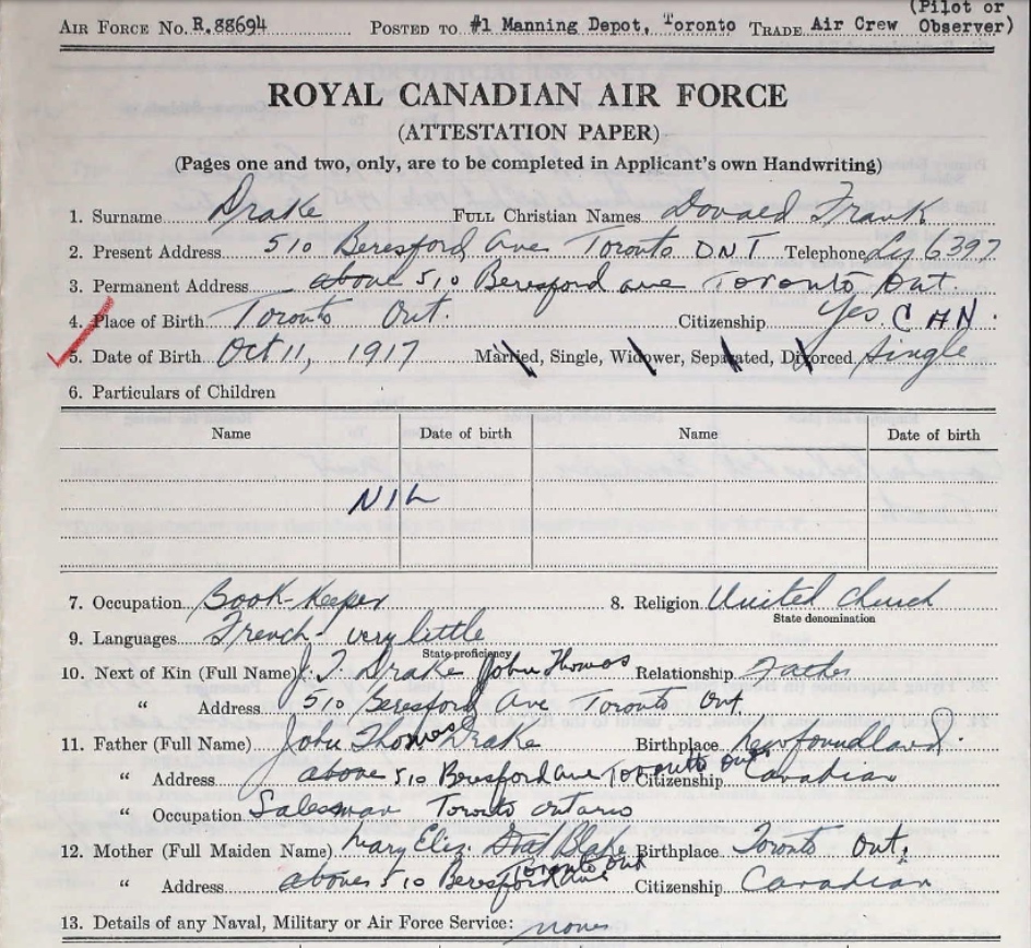 Fils de John T. Drake et Mary E. Drake, de Toronto, Ontario.