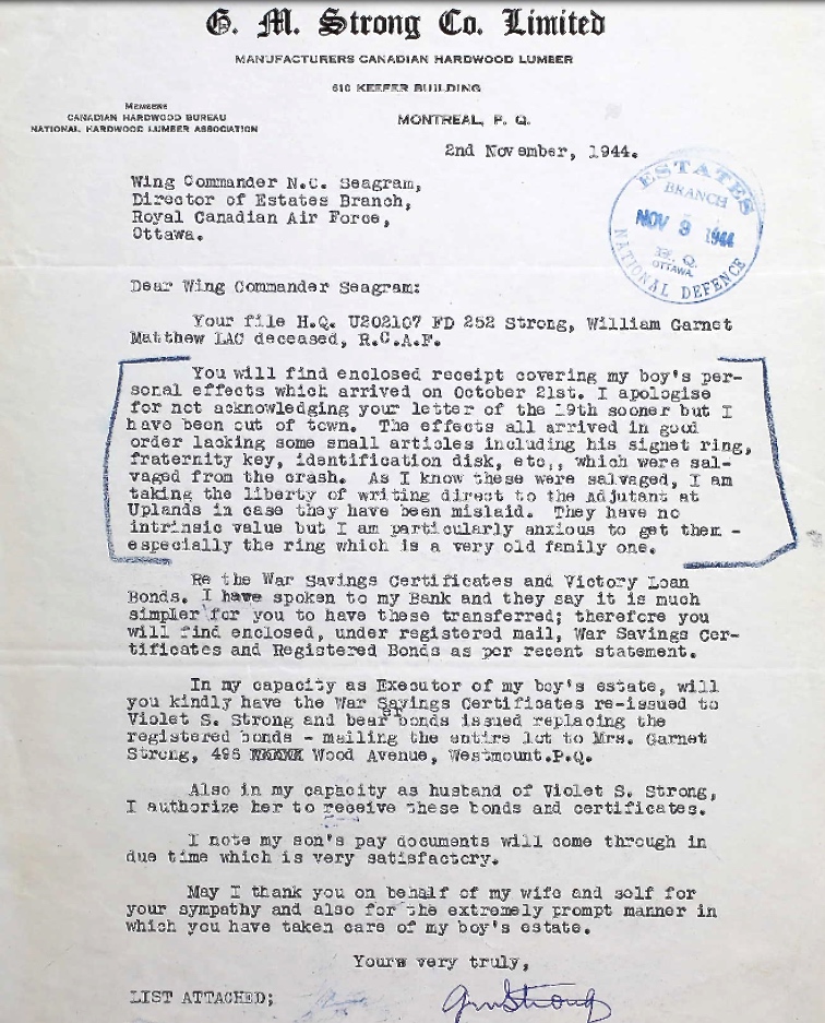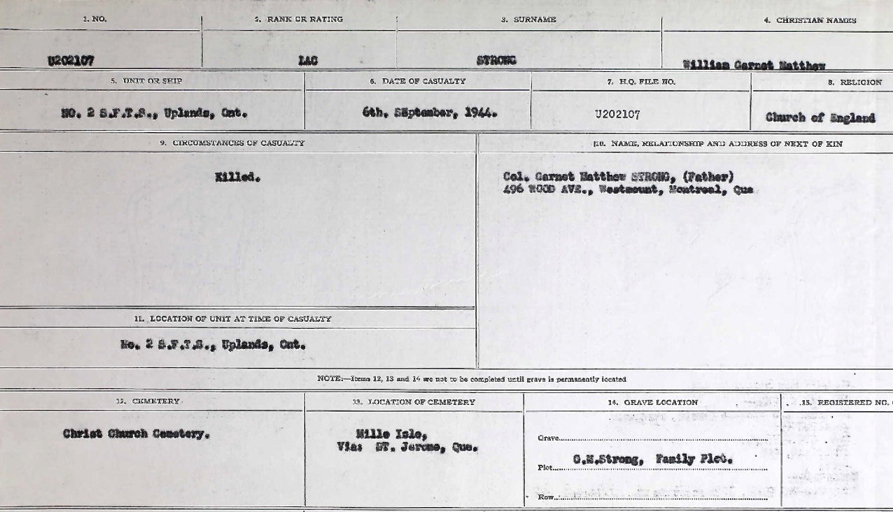 Fils de Colonel Garnet M. Strong et Violet Strong, de Montréal. Family