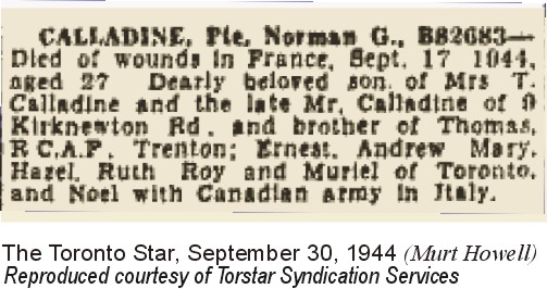 Fils de Thomas Calladine et de Mary Alice Calladine (née Hill), de Toronto, Ontario.