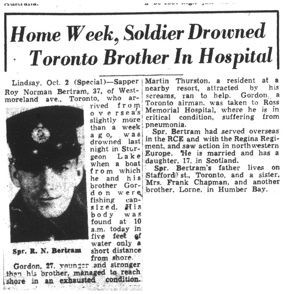 Fils de Norman Thomas et Mary Bertram, de Toronto. Époux de Margaret H. Bertram, de Toronto.