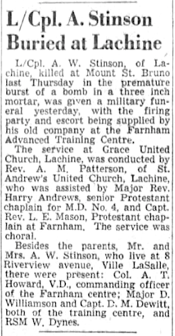Né le 25 novembre 1925 à Lachine, Québec. Enfant unique de Albert Wesley Stinson et Leta Dorthea Marie (née Graydon Stinson, de Ville La Salle, Québec.