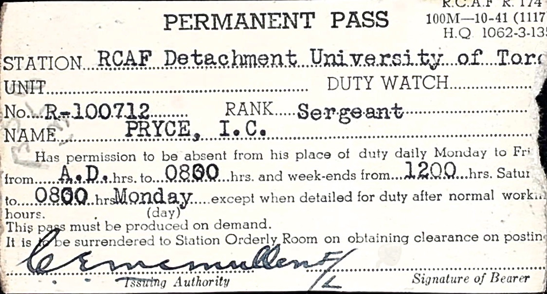 Galerie numérique de Flight Sergeant Irwin Coleston Pryce
