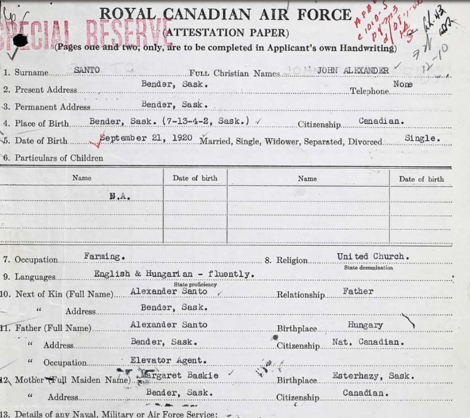 Naissance : 21 septembre 1920 Bender, Saskatchewan