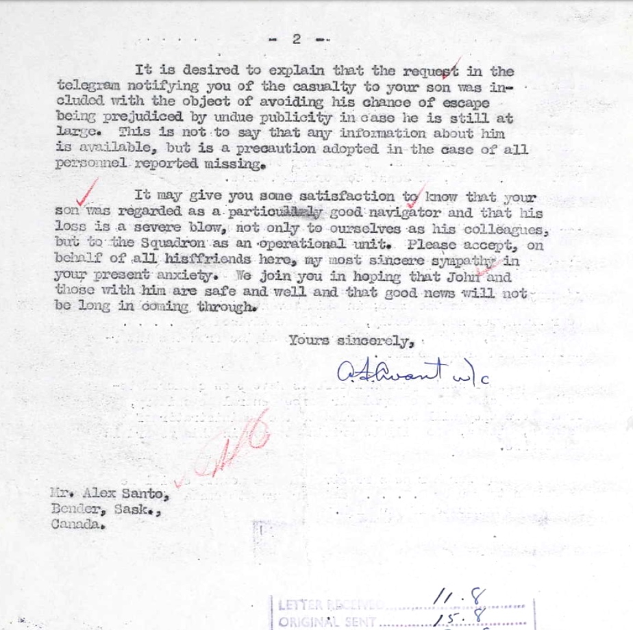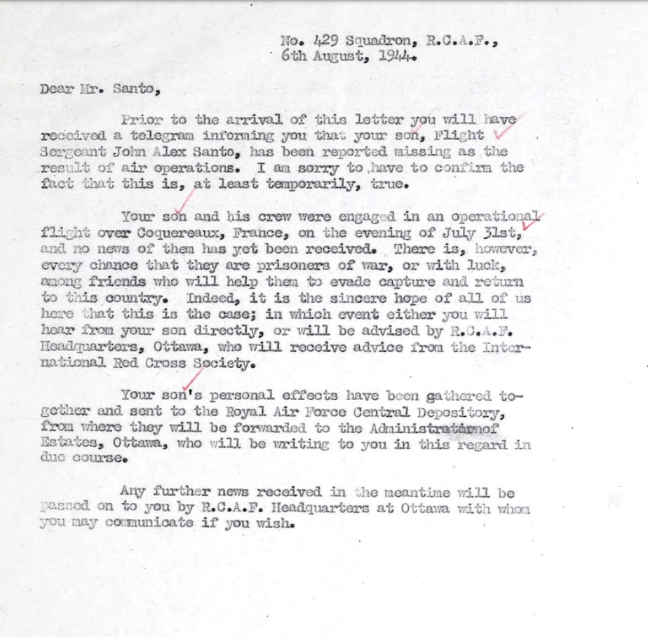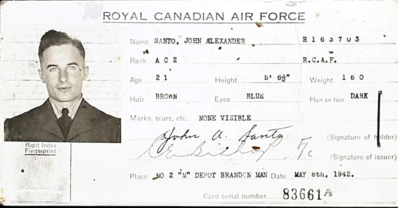 Frère jumeau du sous-officier breveté, 1re classe Frank Robert Santo, décédé au service du Royal Canadian Air Force.