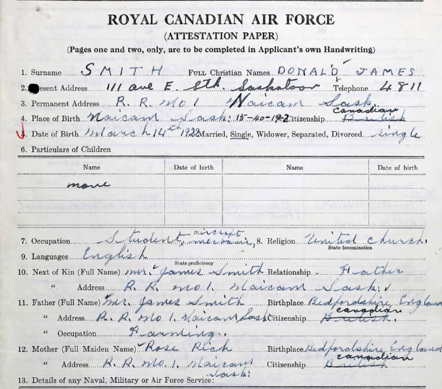 Fils de James et Rose Smith, de Naicam, Saskatchewan.