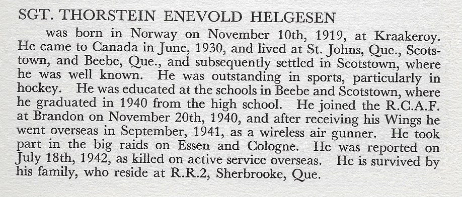 Fils de Einar et Anna Louise Helgesen (née Enevoldsen), de Sherbrooke, Québec.