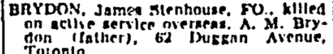 Fils de Arthur Mackenzie Brydon et Helen Mary Brydon, de Toronto, Ontario, Canada.