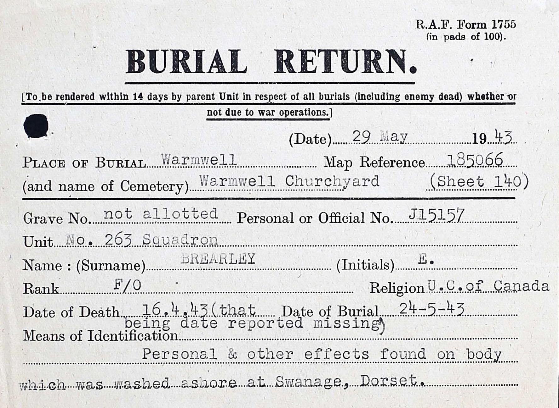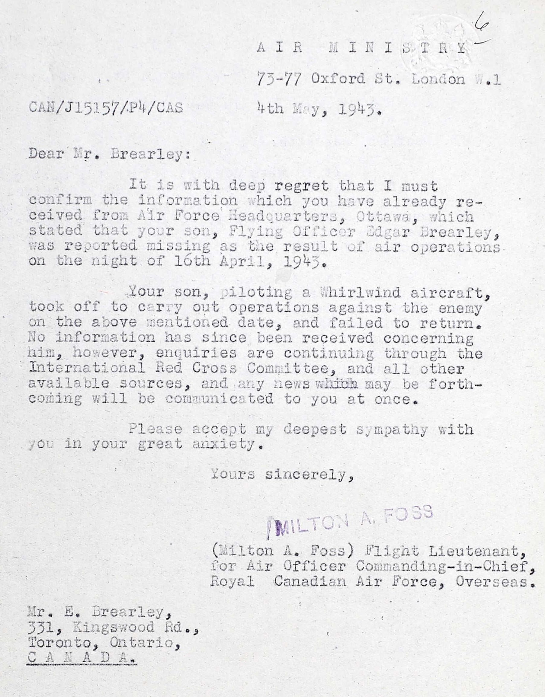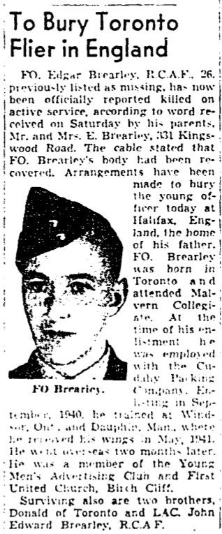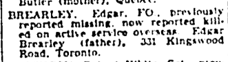 Fils de Edgar et Lillian Brearley, de Toronto, Ontario.