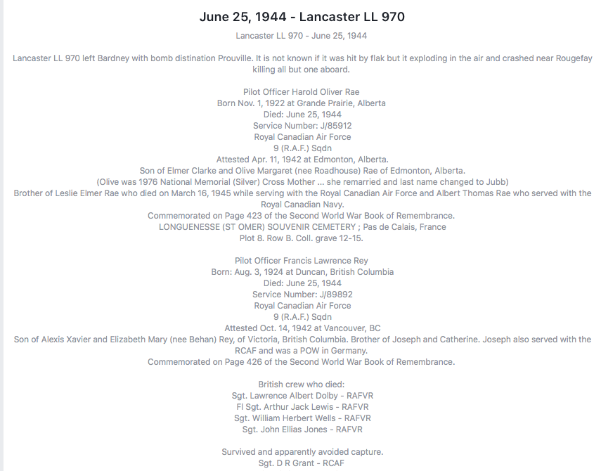 Fils de Elmer et Olive Rae (La Mère de la Croix du Souvenir (Croix d’argent) de 1976).