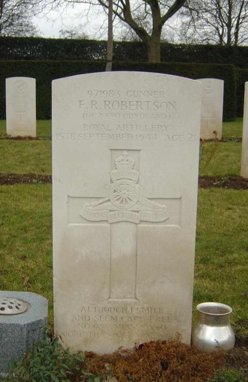 Fils de Monsieur et Madame James Robertson; époux de Gaynor Veda Robertson, de Hadley. De Terre-Neuve, Canada.