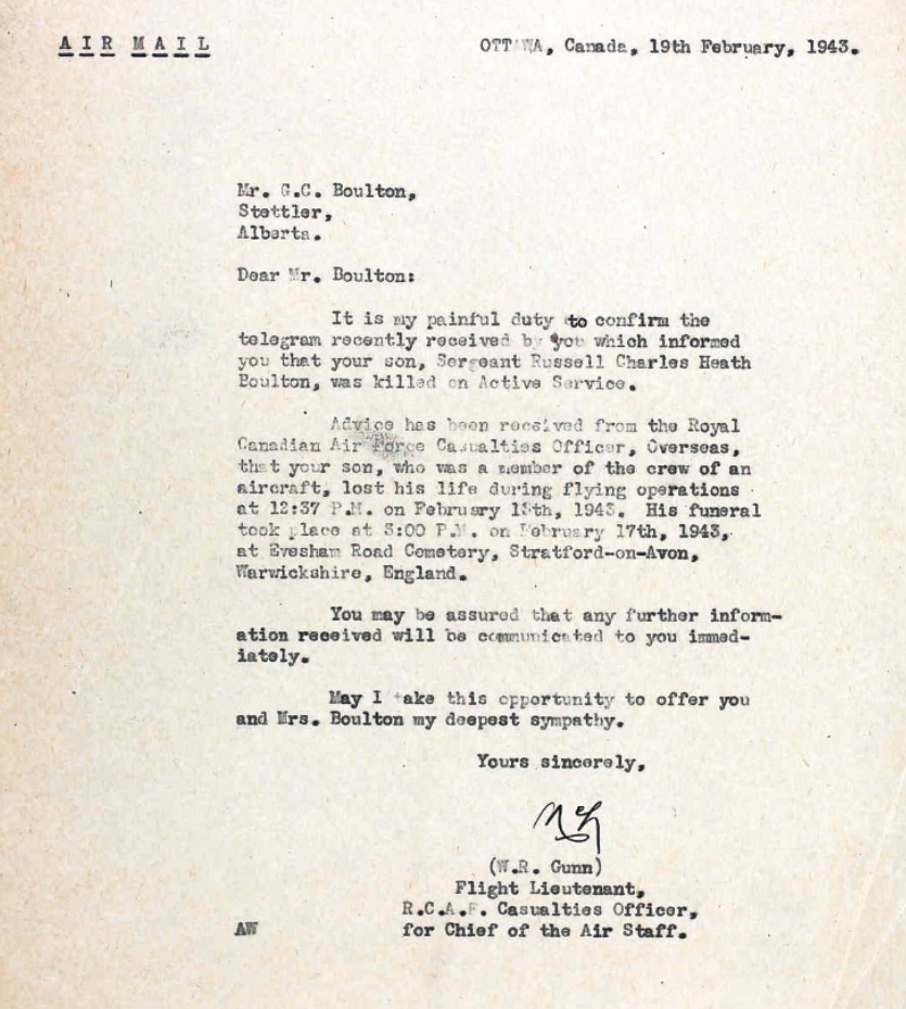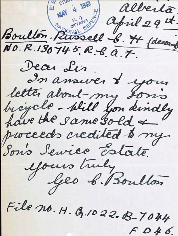 Fils de George Cartwright Boulton et Florence Mary Boulton, de Stettler, Alberta, Canada.