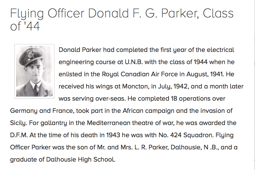 Fils de Lawrence et Ruby A. Parker, de Dalhousie, Nouveau-Brunswick.