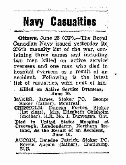 Fils de Alex. W. Chisholm et de Elizabeth Chisholm (née MacGillivray), de Dunvegan, Ontario, Canada.