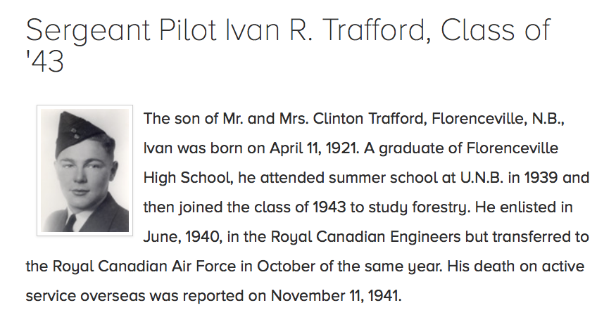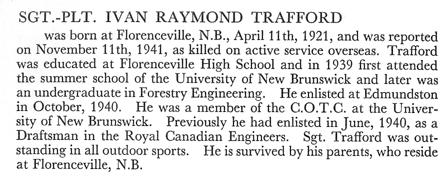 Fils de Clinton Ray et Gladys Alexa (nee Gray) Trafford de Florenceville, Nouveau Brunswick.
