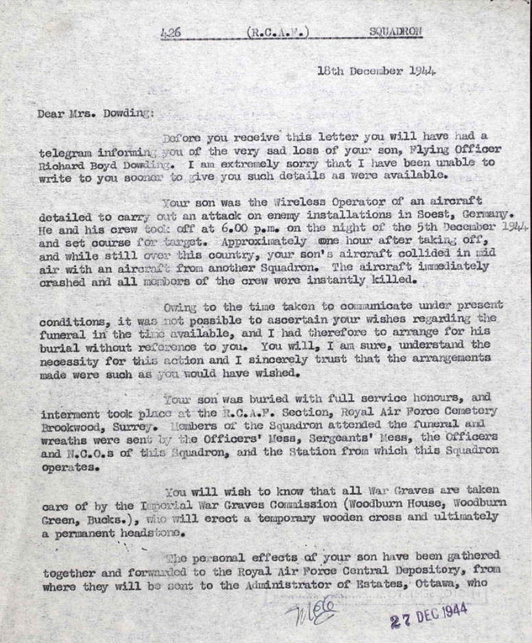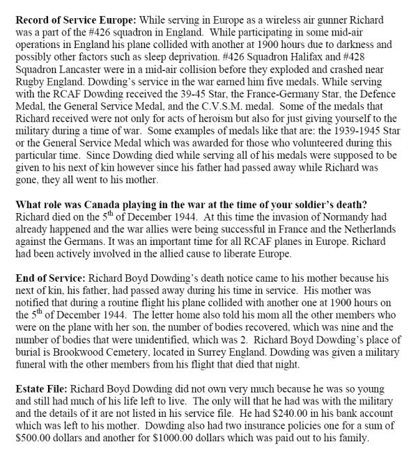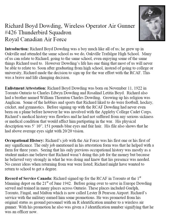 Fils de C. E. Dowding, et de Rosalind L. Dowding, de Oakville, Ontario, Canada.