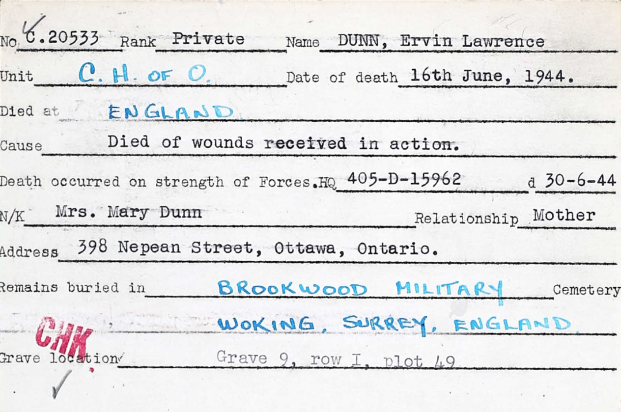 Galerie numérique de Soldat Ervin Lawrence Dunn