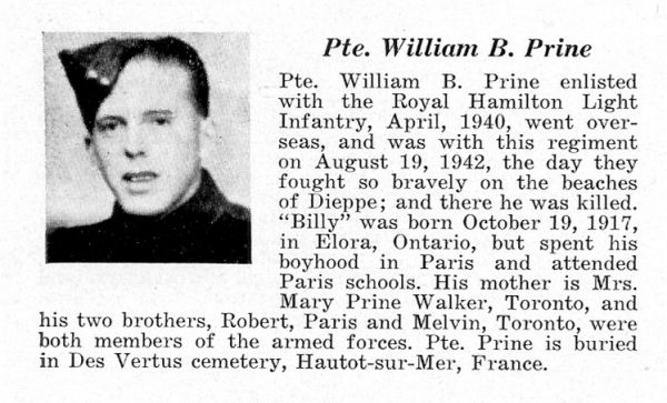 Fils de William B. Prine, et de Mary A. Prine, de Toronto, Ontario.