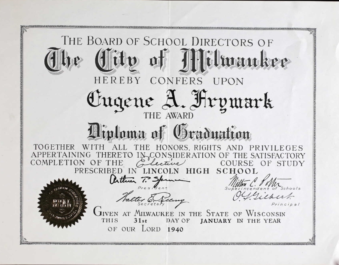 Fils de Aloysius Albert et Mary Julia Frymark, de Milwaukee.