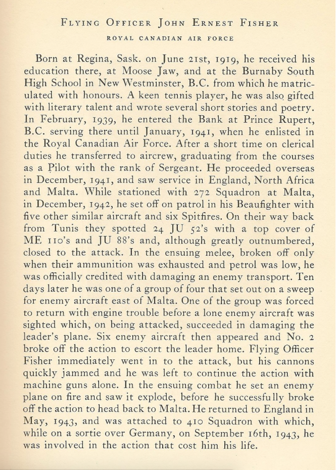 Fils de Ernest Harold et Clara Lee Fisher, de New Westminster, Colombie-Britannique.