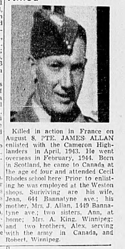 Fils de James Carruthers Allan et Joan Allan. Époux de Jean Allan, de Winnipeg, Manitoba.