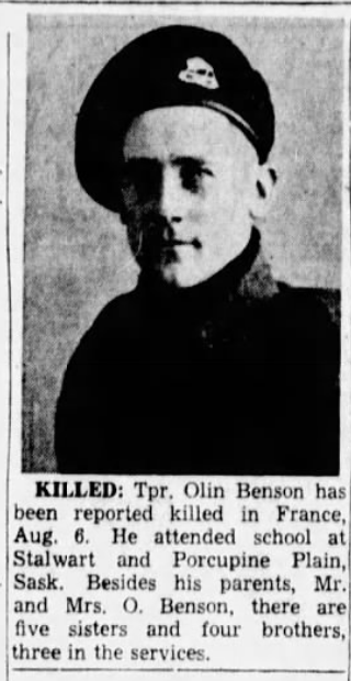 Fils de Odin et Lizzie Benson de Porcupine Plain, Saskatchewan.