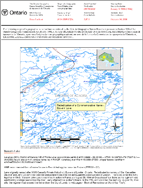 Fils de Milton et Elizabeth Ann Bowern, de London, Ontario. Frère de Percy, Wesley, Flossy, Maggie, Edna, Ada, Olive, Mabel et soldat Malcolm John Bowern, le régiment Lincoln et Welland, tué en action le 25 août 1944.