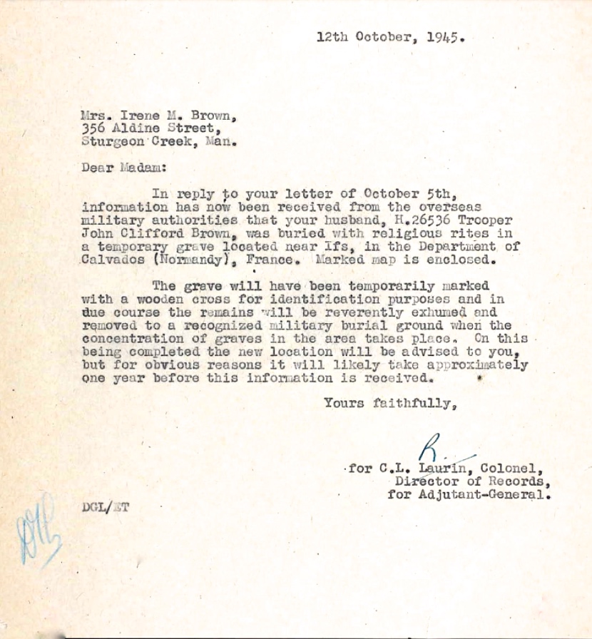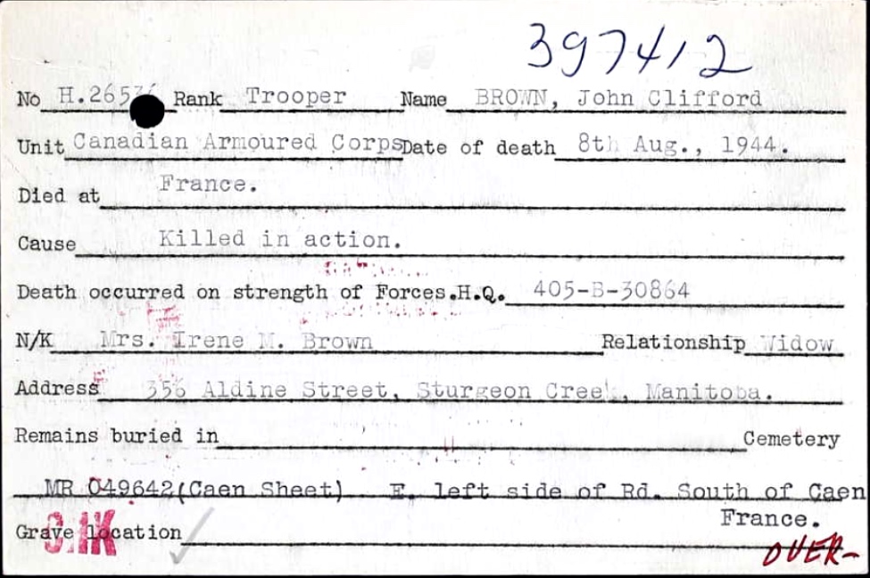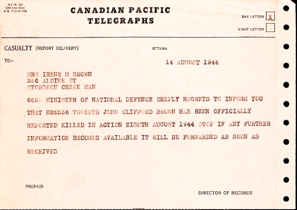 Fils de Peter et Emma Brown; Époux de Irene Mary Brown, de Sturgeon Creek, Manitoba.