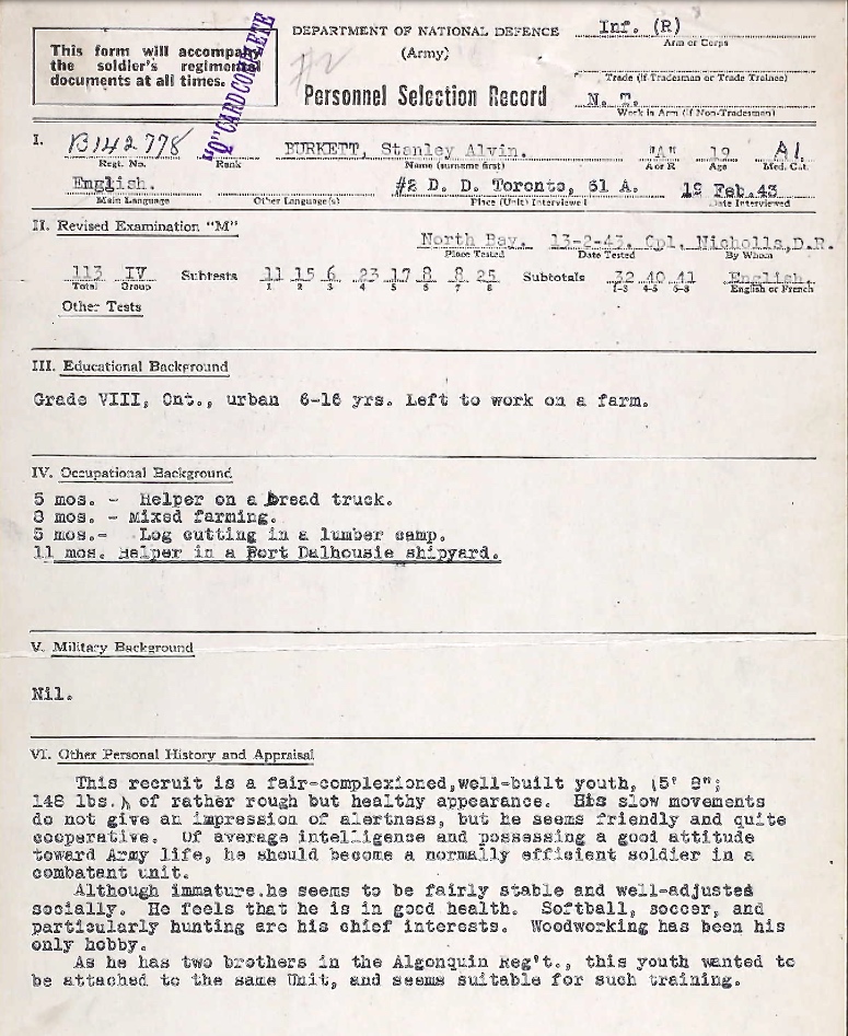 Galerie numérique de Soldat Stanley Alvin Burkett