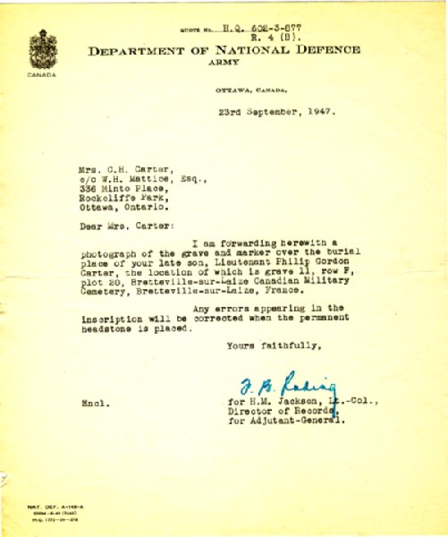 Fils de Clarence Henderson Carter et Emma Irene Carter, de Ottawa, Ontario.
