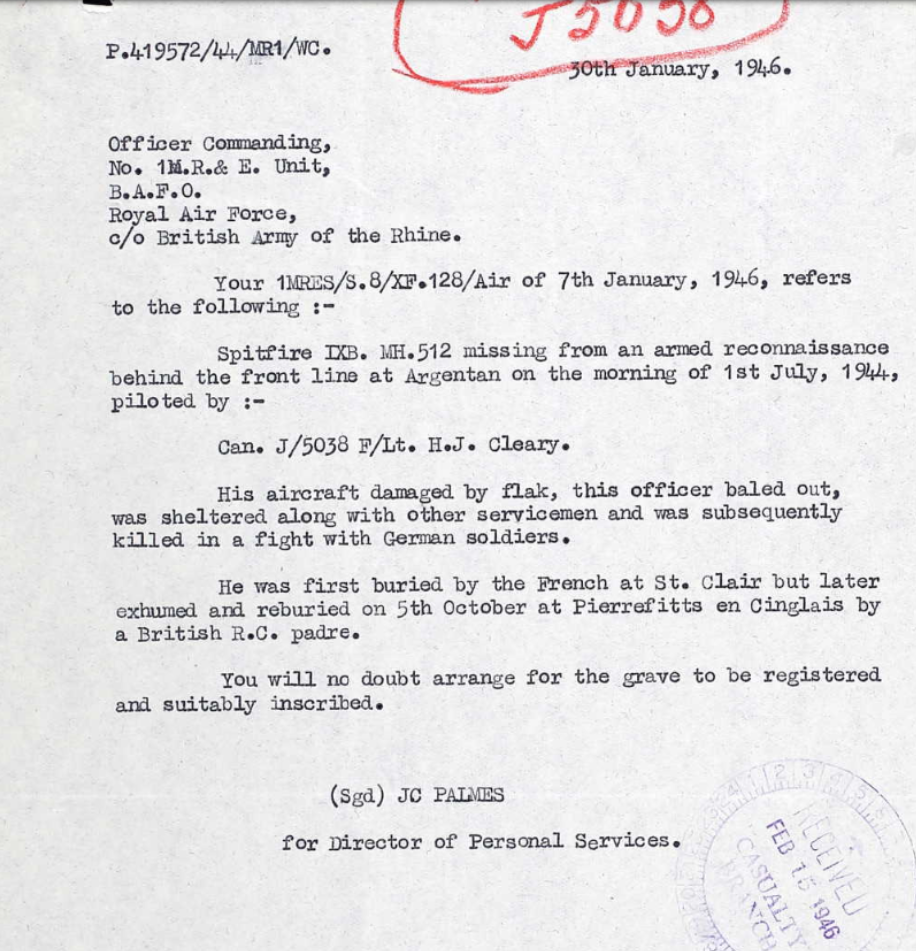 Galerie numérique de Capitaine d'aviation Henry Joseph Cleary