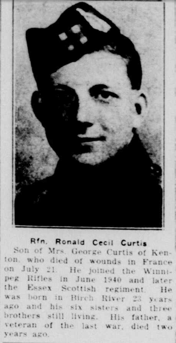 Fils de George B. Curtis, et de Gertrude Curtis, de Kenton, Manitoba.