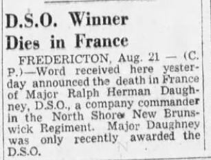 Fils de Frank E. et Mary L. Daughney, de Dalhousie, comté de Restigouche, Nouveau-Brunswick, Canada. Frère du sergent de section John Haliburton Daughney, décédé le 22 avril 1942 pendant qu’il servait dans le Royal Canadian Air Force.