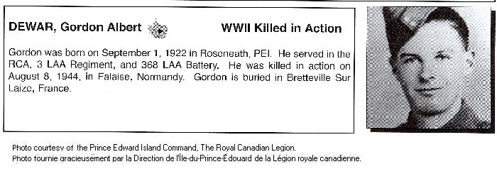 Fils de William Weston Dewar et Florence M. Dewar, de Brudenell, comté de Kings, Île-du-Prince-Édouard.