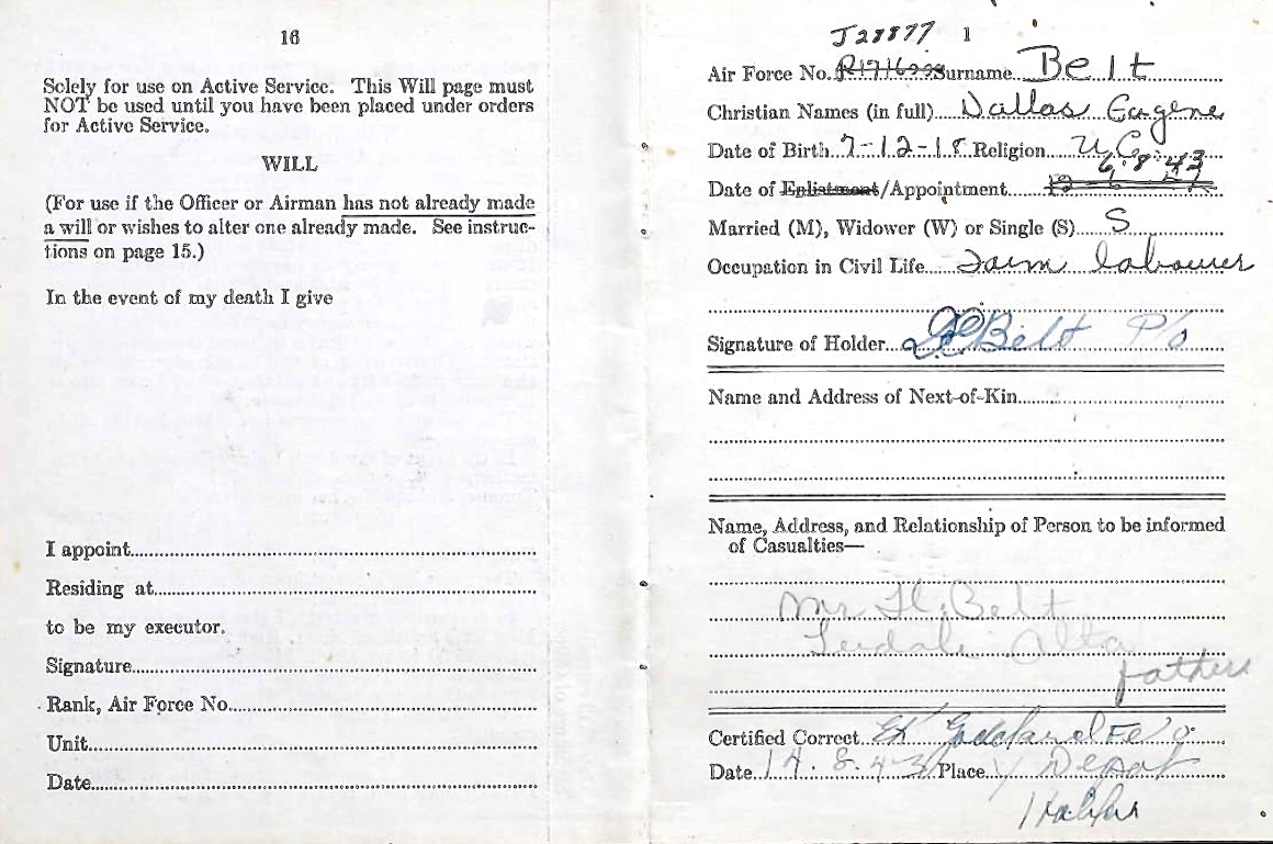 Galerie numérique de Lieutenant d'aviation Dallas Eugene Belt