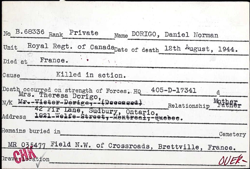 Unité/Régiment : Royal Regiment of Canada, R.C.I.C.