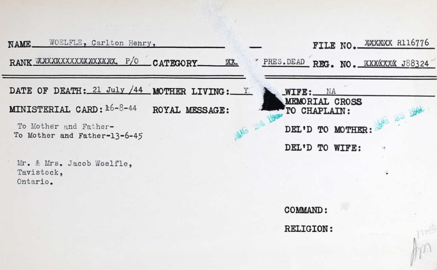 Galerie numérique de Sous-lieutenant d'aviation Carlton Henry Woelfle
