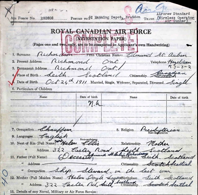Galerie numérique de Flight Sergeant Edmund St Aubin Richardson