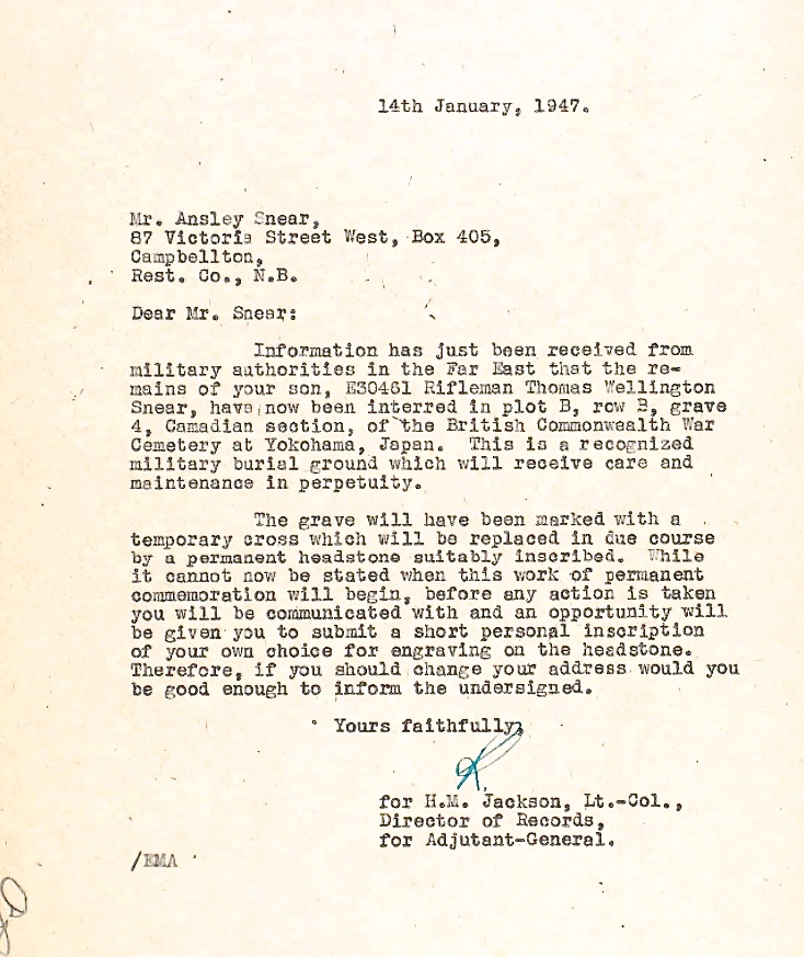 Fils d’Ansley Snear et de Mary Louise Kaine de Campbellton, Nouveau-Brunswick.