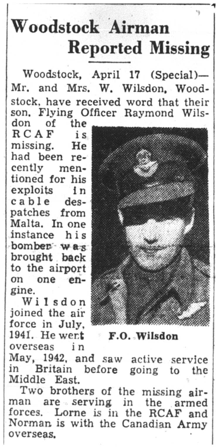 Galerie numérique de Flying Officer (Air Observer) Raymond William Wilsdon