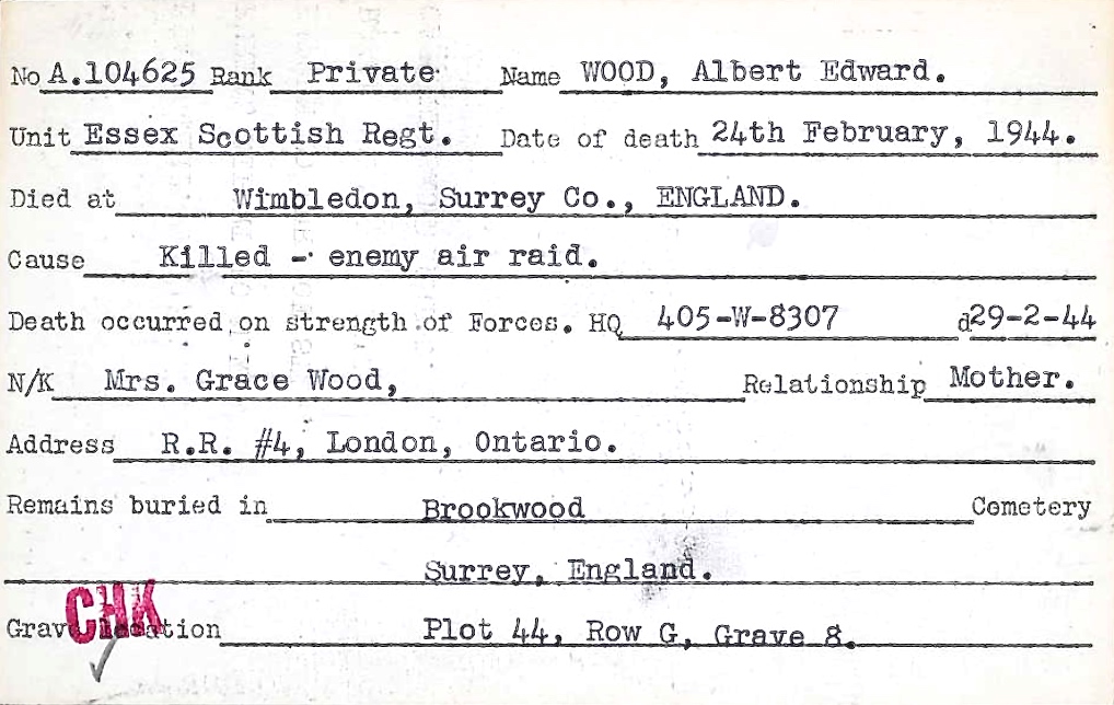 En 1917, une partie du cimetère de Brookwood (la nécropole de Londres) a été réservée à l'inhumation d'hommes et de femmes des forces du Commonwealth et d'Américains qui étaient morts dans la région de Londres, nombre d'entre eux à la suite de blessures de guerre. Ce site a été agrandi par la suite pour accueillir les victimes de la Seconde Guerre mondiale. Les tombes des victimes alliées se trouvent dans les sections américaine, belge, tchèque, hollandaise, française et polonaise. Il y a aussi une section allemande et une section italienne où les prisonniers de guerre sont enterrés.