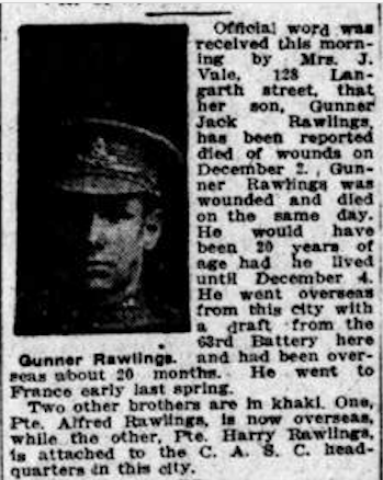 Fils de Mrs. Jane Vale, de London, Ontario, Canada. Né à Forest Gate, London, Angleterre.