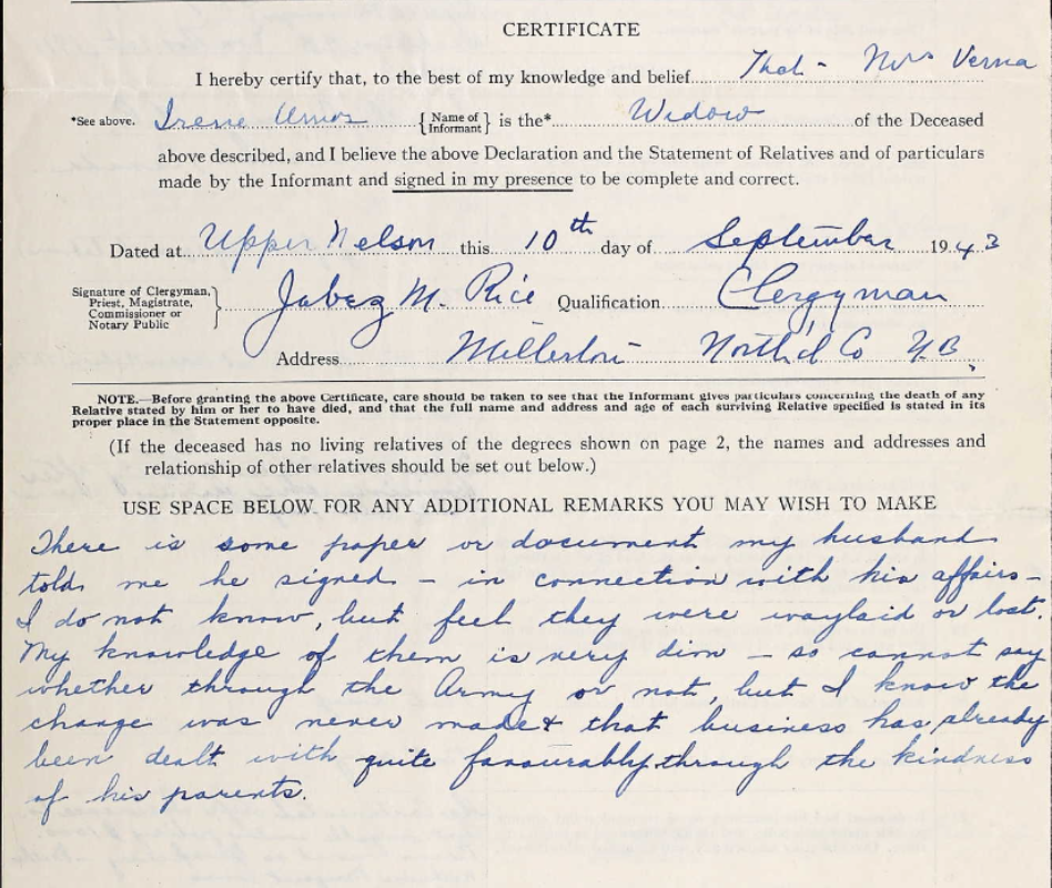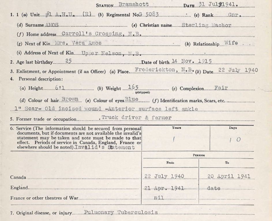 Fils de Theodore K. Amos et Catherine M. Amos, de Carrolls Crossing. Époux de Verna I. Amos, de Upper Nelson.