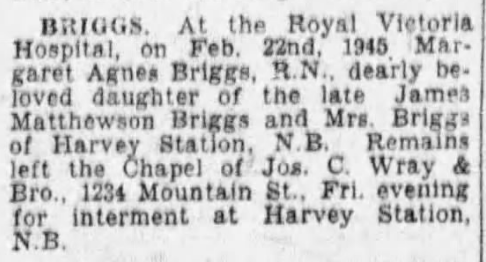 Fille de Matheson J. et Cora L. Briggs, de Harvey Station, Noveau Brunswick.