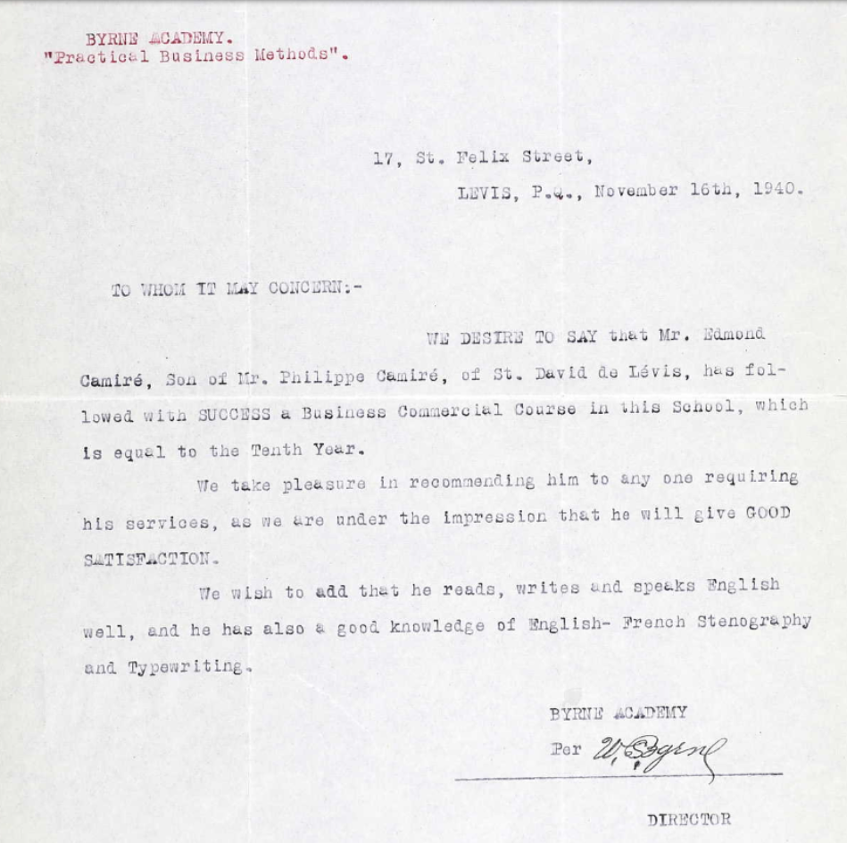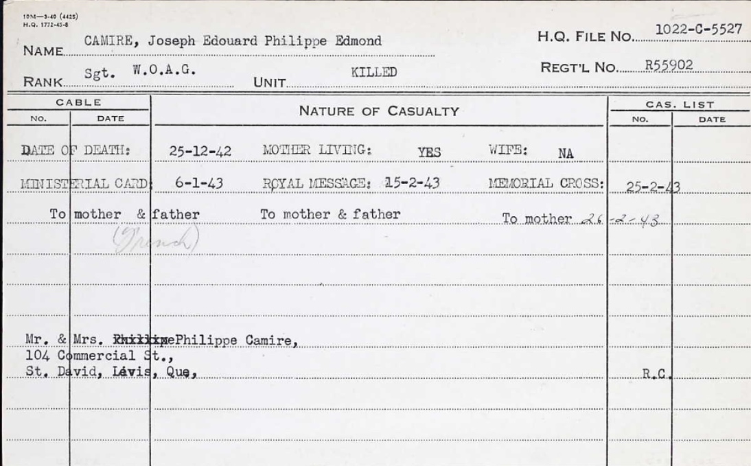 Fils de Philippe et Florence Camire, de St. David, Province de Québec.