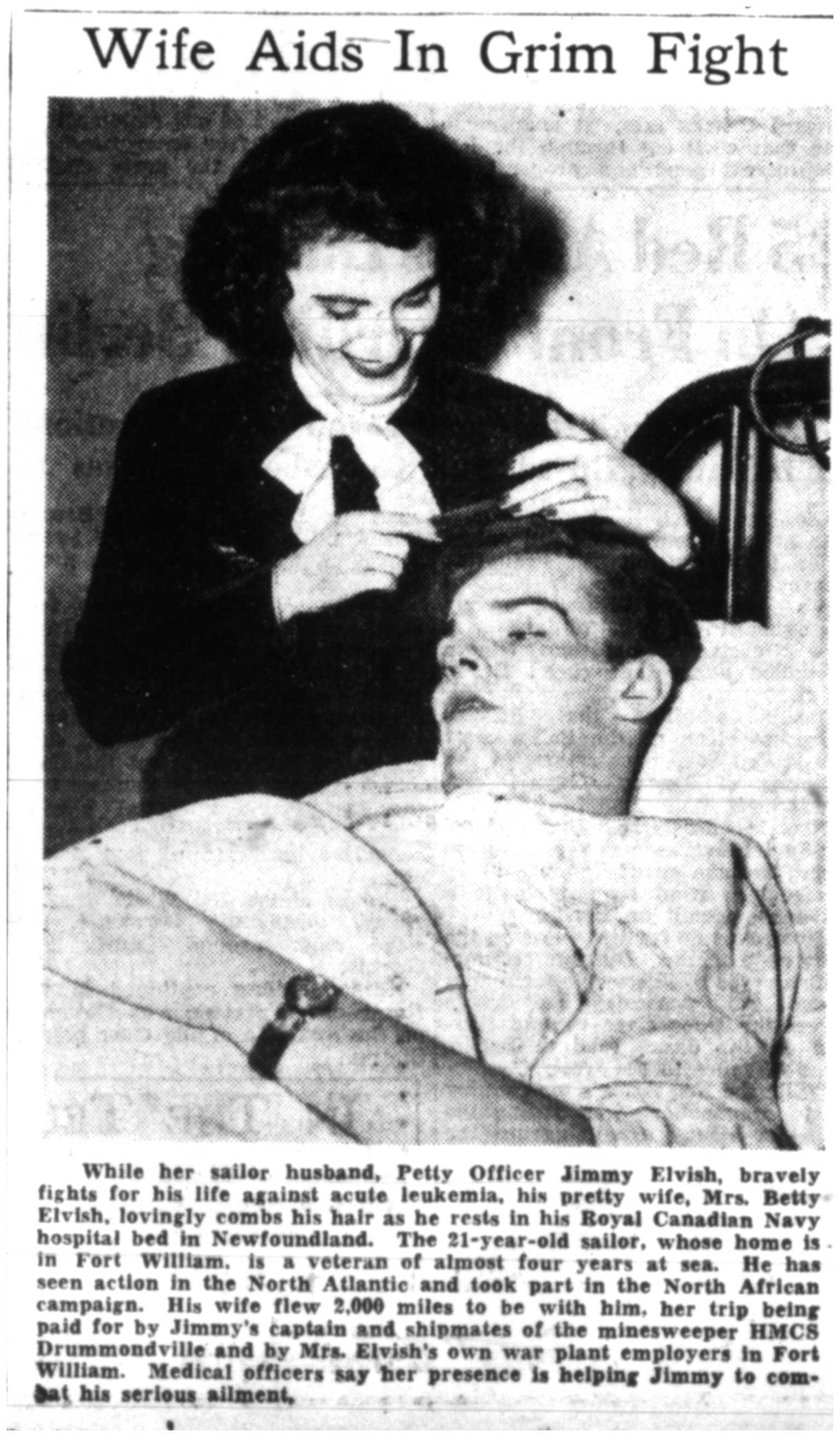 Fils d'Ernest et Lilian Elvish de Fort William, Ontario. Époux d'Elizabeth V. Elvish de Fort William.